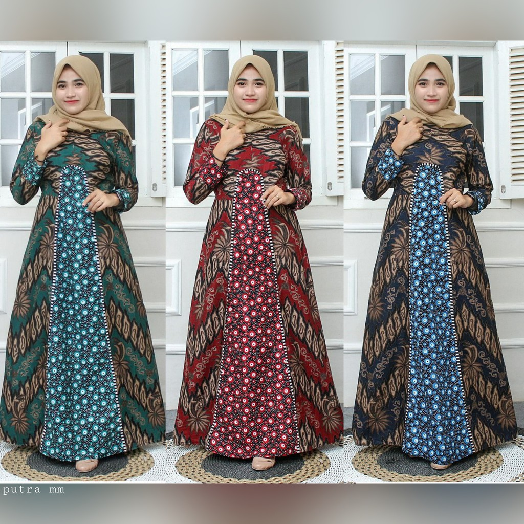 Gamis batik Kombinasi merupakan busana yang tepat bagi seorang wanita. Karena memiliki model busana yg simple dan modern. Meski demikian penampilan tidak akan ketinggalan zaman. Warna, motif terbilang modern dan tradisional. bahan katun yg beragam tentunya tidak panas dan mudah menyerap keringat. Bisa dipakai untuk berbagai acara.