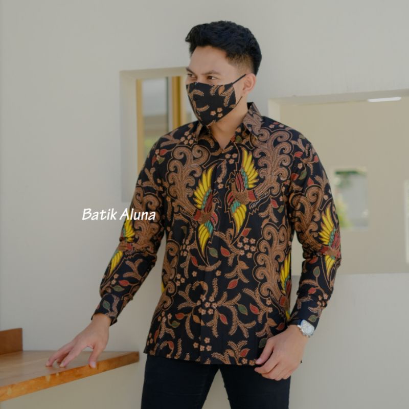 Name: Atasan Kemeja Batik Pria Lengan Panjang Premium Batik Aluna Modern Keraton Solo Furing Terlaris