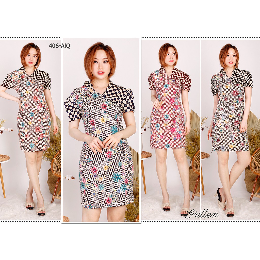 Name: Gritten (60rbx4pc) Dress Batik Fashion Minidress Pakaian Wanita Grosir 406 Aiq