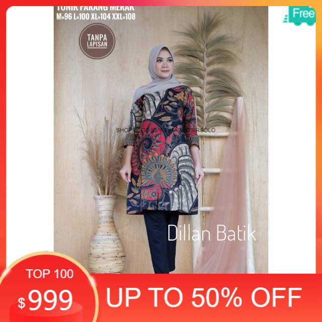 Jual Murah Pakaian W di Kabupaten Nias New Jumbo Xxxxl Big Size Tunik Batik Parang Merak Print-primis-primisima Solo Sragenan dari Dewo Batik Official Kab. Sukoharjo