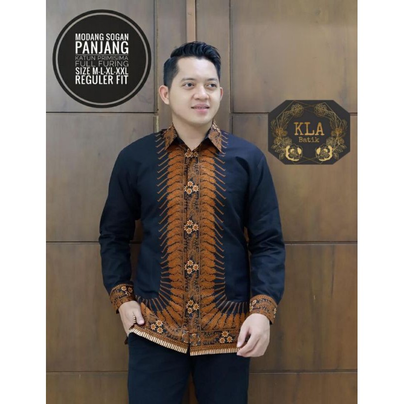 Promo Pakaian di Kota Sibolga Modang Hitam Batik Pria Lengan Panjang Full Furing Batik Katun Batik Solo dari Batik Kalem Style Kota Surakarta (solo)