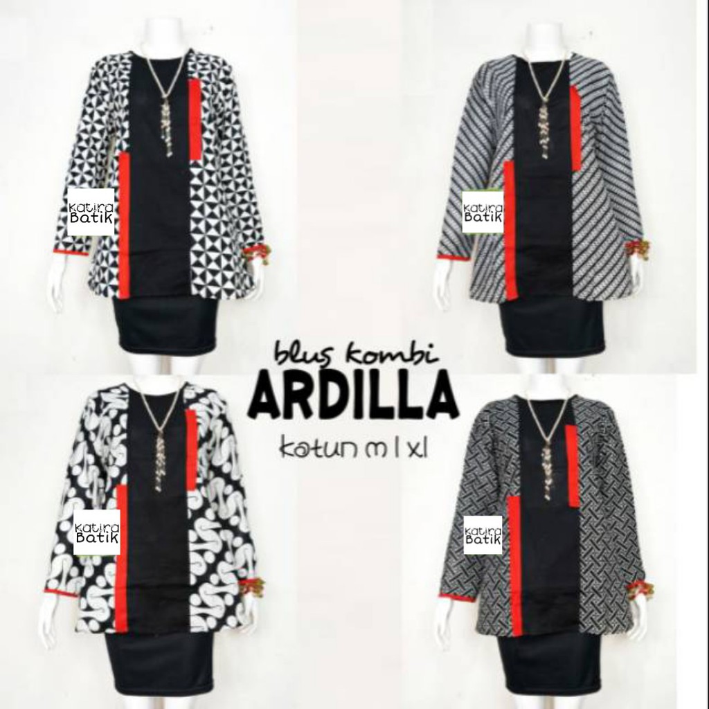 BLUS COMBI ARDILLA BLUS BATIK CEWEK BLOUSE BATIK WANITA SERAGAM BATIK KERJA BATIK MODERN BATIK SOLO