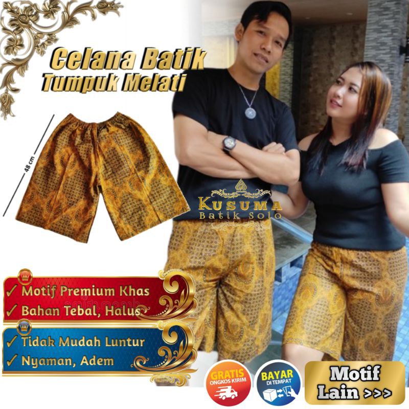Name: Celana Pendek Pria Batik Solo Motif Tumpuk Melati Kolor Santai Keren Khas Etnik Terbaru Kusuma